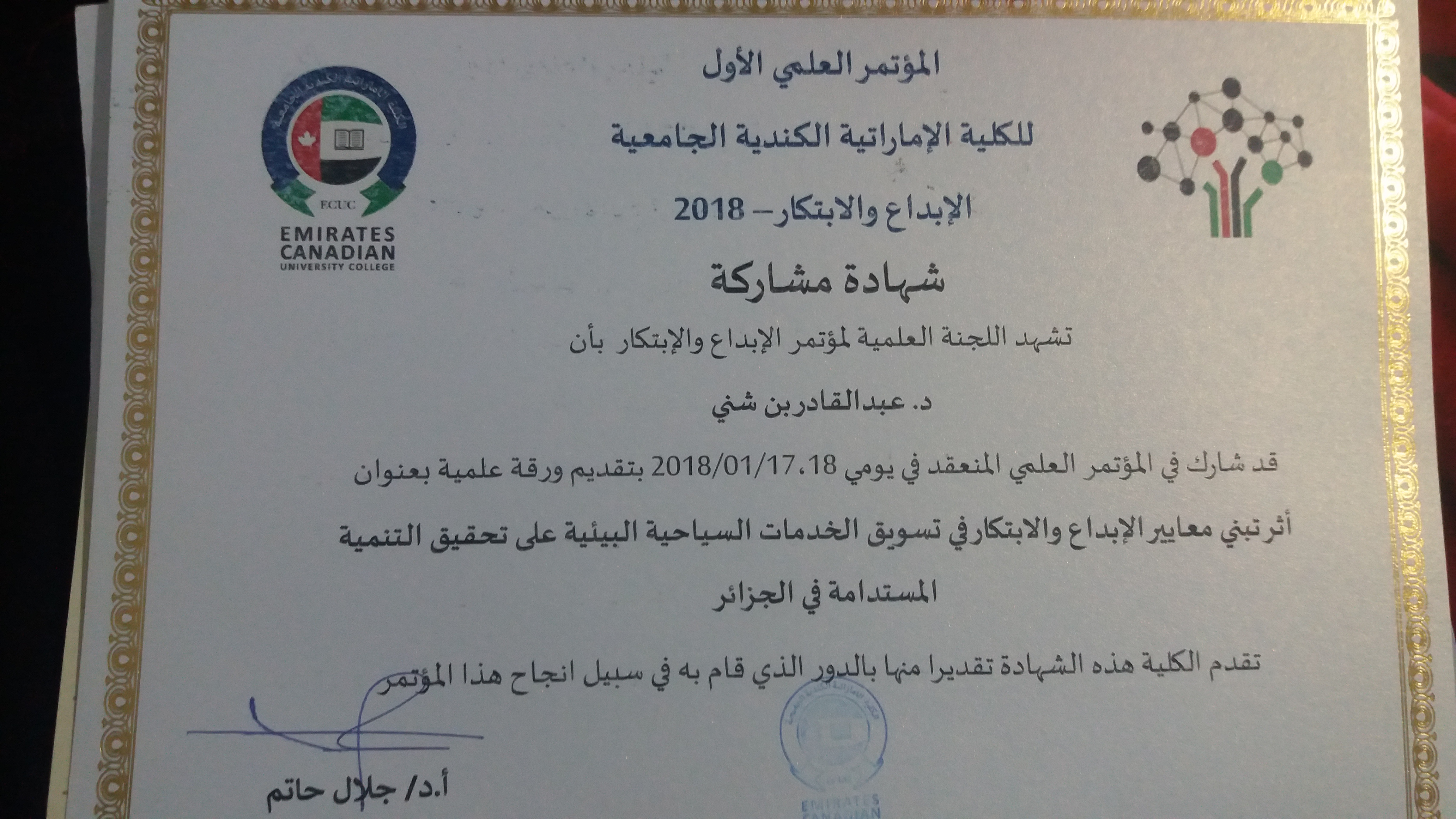 اثر تبني الابداع والابتار فيي تسويق الخدمات السياحية البيئية على تحقيق التنمية المستدامة ففي الجزائر