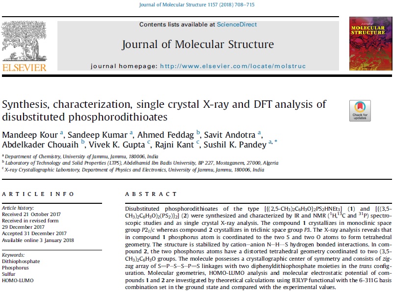 Synthesis, characterization, single crystal X-ray and DFT analysis of disubstituted phosphorodithioates